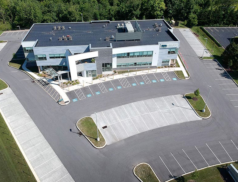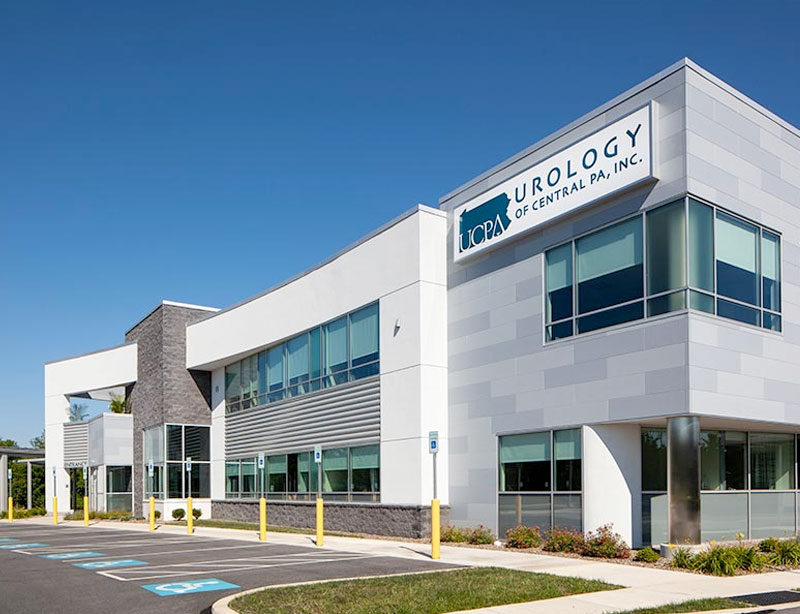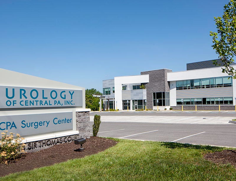 Sir Thomas Court wide shot of building with Urology of Central PA and ICPA Surgery Center Sign with stone accents